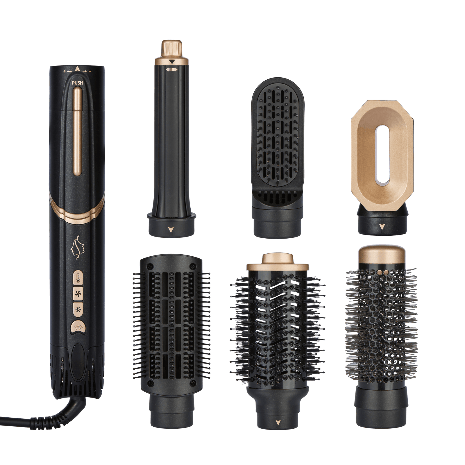 Alt-i-én stylingløsning: Du får tørrehoved, børster og krølle/volumefunktion samlet i én enhed – praktisk og pladsbesparende.