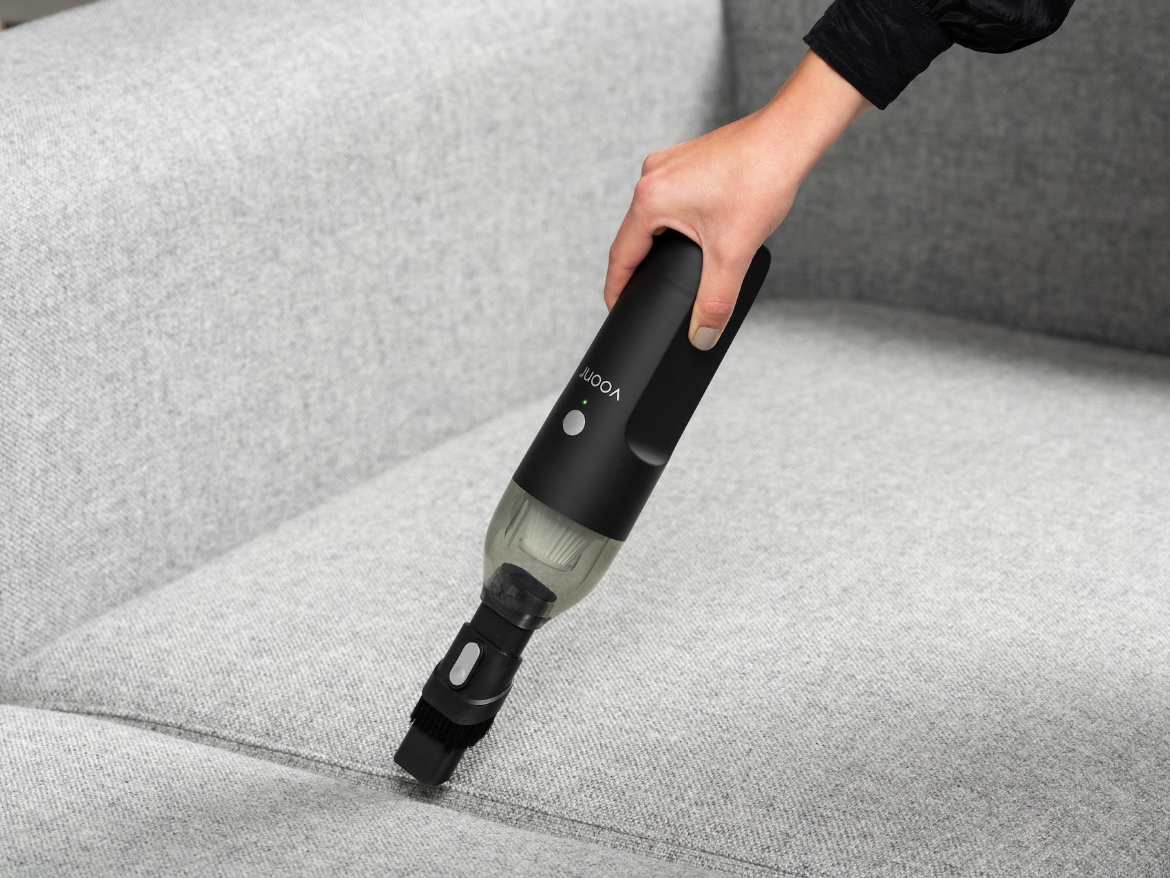 Jeg bruger den overalt, fordi den er så lille og let – i bilen, på spisebordet og i skoreolen. Der medfølger 2-i-1 mundstykke, der gør den effektiv til at rengøre alle steder i bilen.